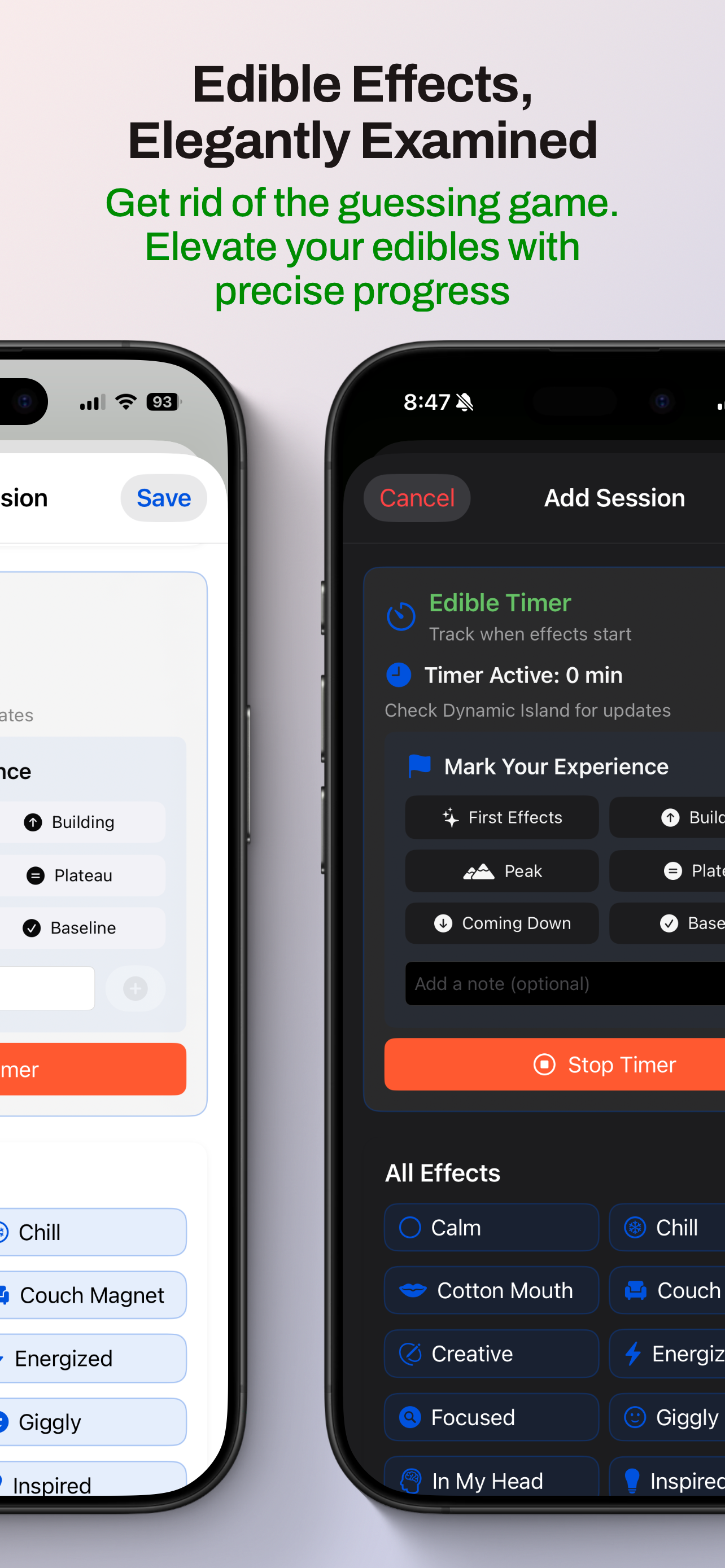 We've all been there—"Did it kick in? Should I take more?" Now you can track exactly when effects start, mark your journey from first tingles to peak, and build real insights over time.